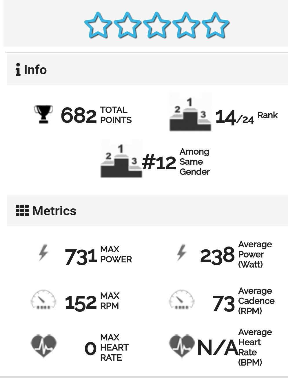 Na afloop van de les zit iedereen, nou ja, vast niet iedereen, maar met mij toch zeker meerdere spinners (mag ik hopen), met meer dan gewone belangstelling naar het scherm te turen in afwachting van de ‘stats’. En als die dan verschijnen, blijft het doorgaans stil, soms akelig stil. Laten we het houden op ‘moe maar voldaan’.